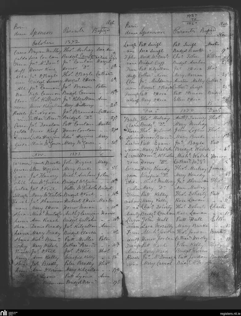 Bohola; County of Mayo; Diocese of Achonry. Baptisms, Oct. 1872 to Dec. 1872