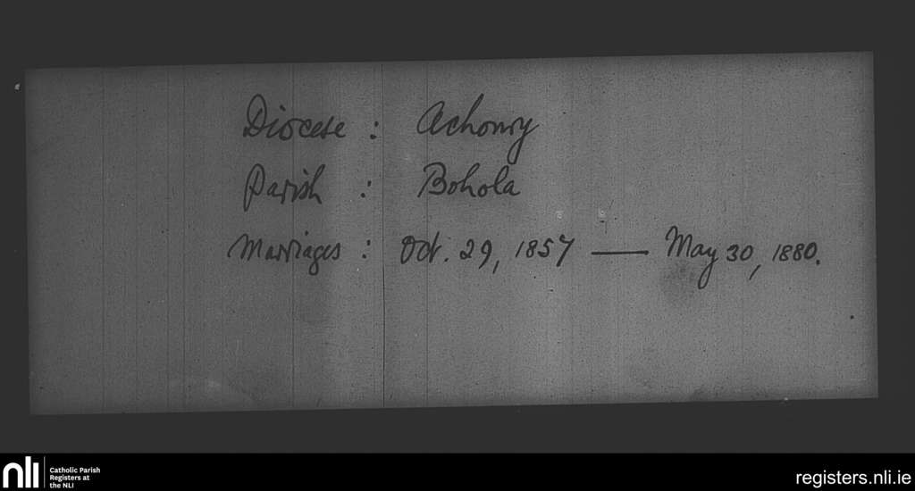 Bohola; County of Mayo; Diocese of Achonry. Marriages