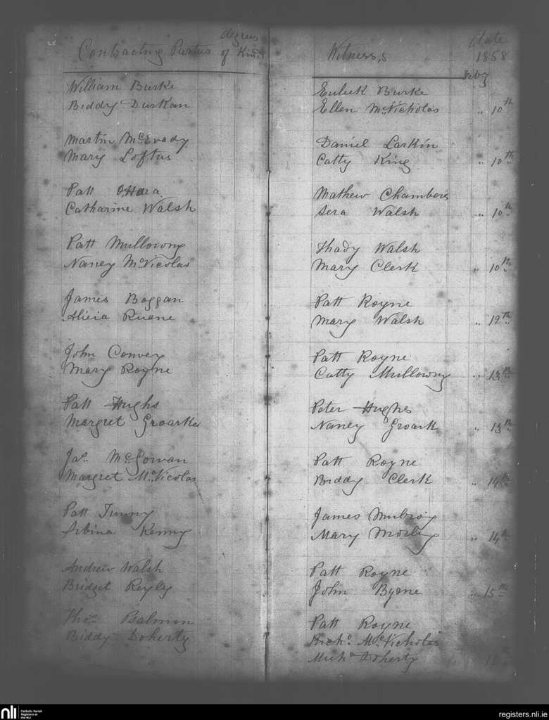Bohola; County of Mayo; Diocese of Achonry. Marriages, Feb. 1858