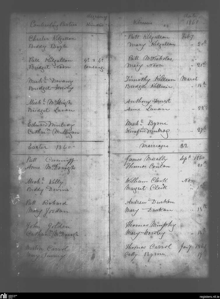 Bohola; County of Mayo; Diocese of Achonry. Marriages, Feb. 1860 to Jan. 1861