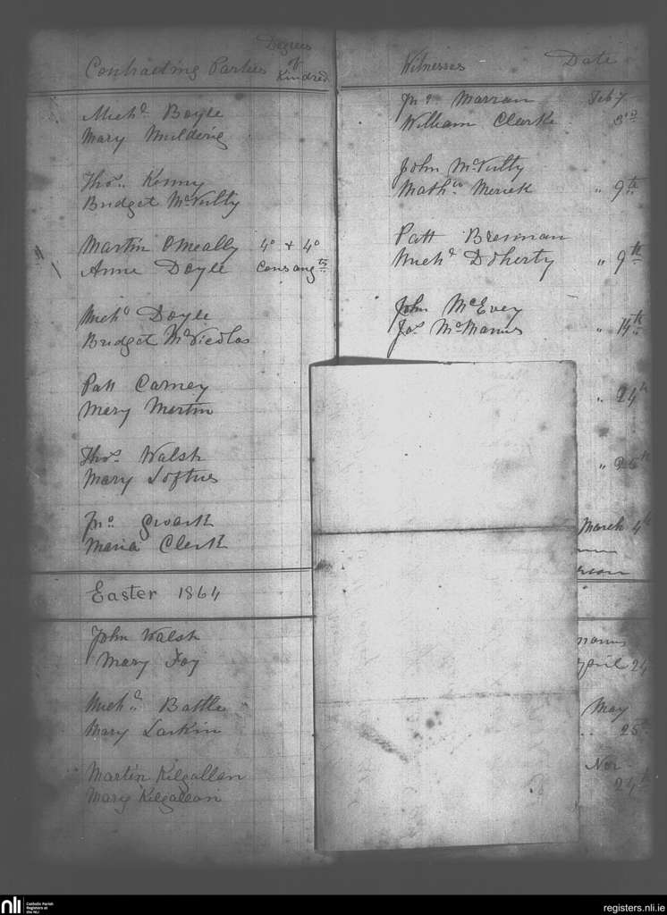 Bohola; County of Mayo; Diocese of Achonry. Marriages, Feb. 1864 to Nov. 1864