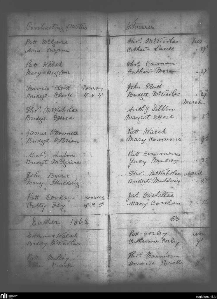 Bohola; County of Mayo; Diocese of Achonry. Marriages, Feb. 1865 to Nov. 1865
