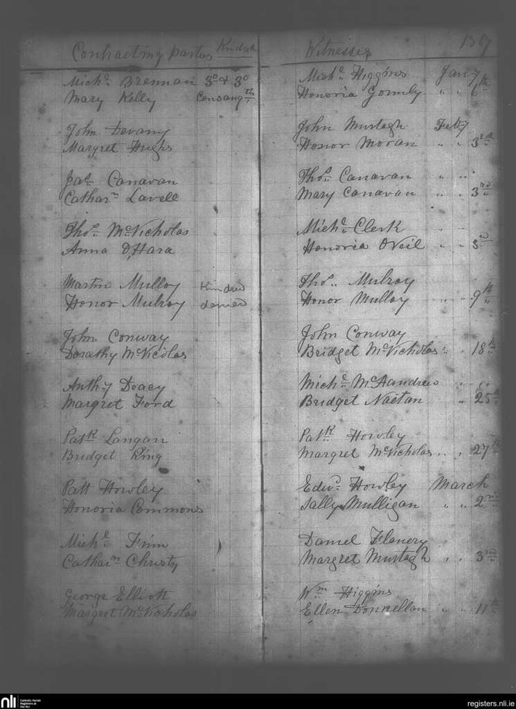 Bohola; County of Mayo; Diocese of Achonry. Marriages, Jan. 1867 to Mar. 1867