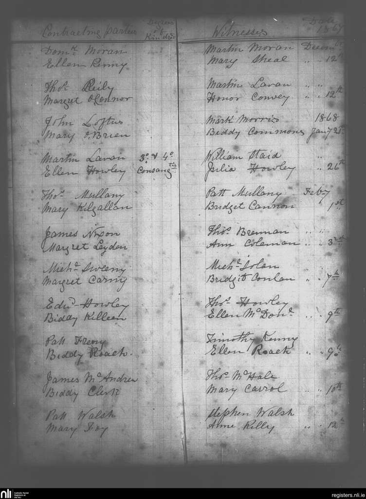 Bohola; County of Mayo; Diocese of Achonry. Marriages, Oct. 1867 to Feb. 1868