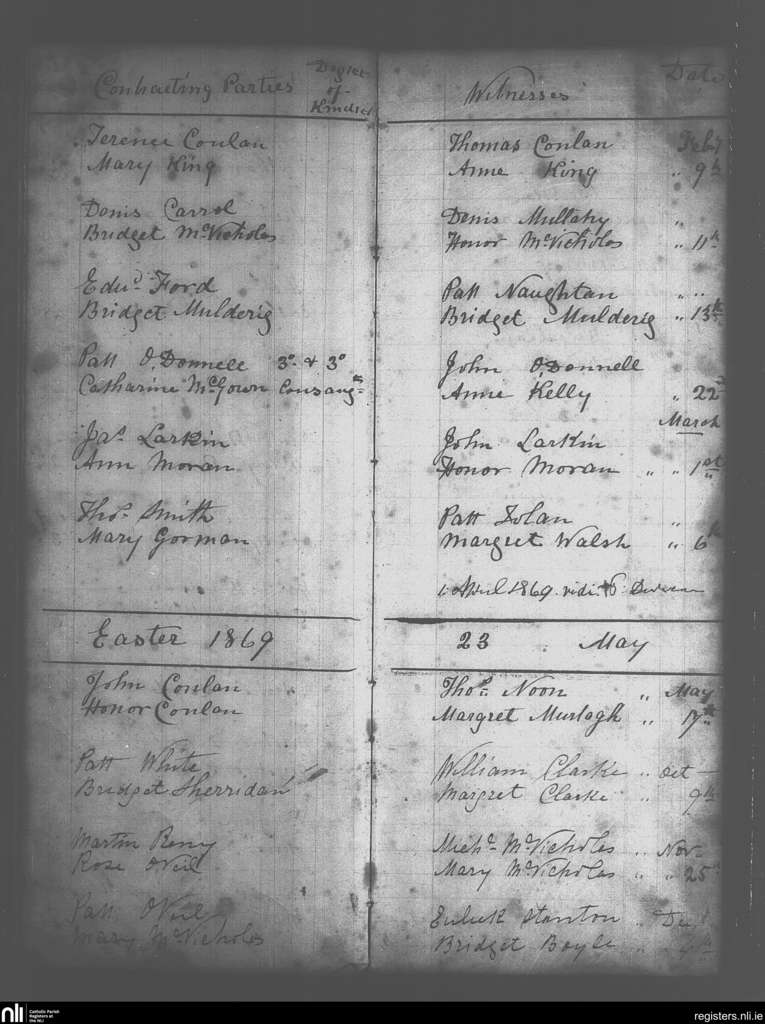 Bohola; County of Mayo; Diocese of Achonry. Marriages, Feb. 1869 to Dec. 1869