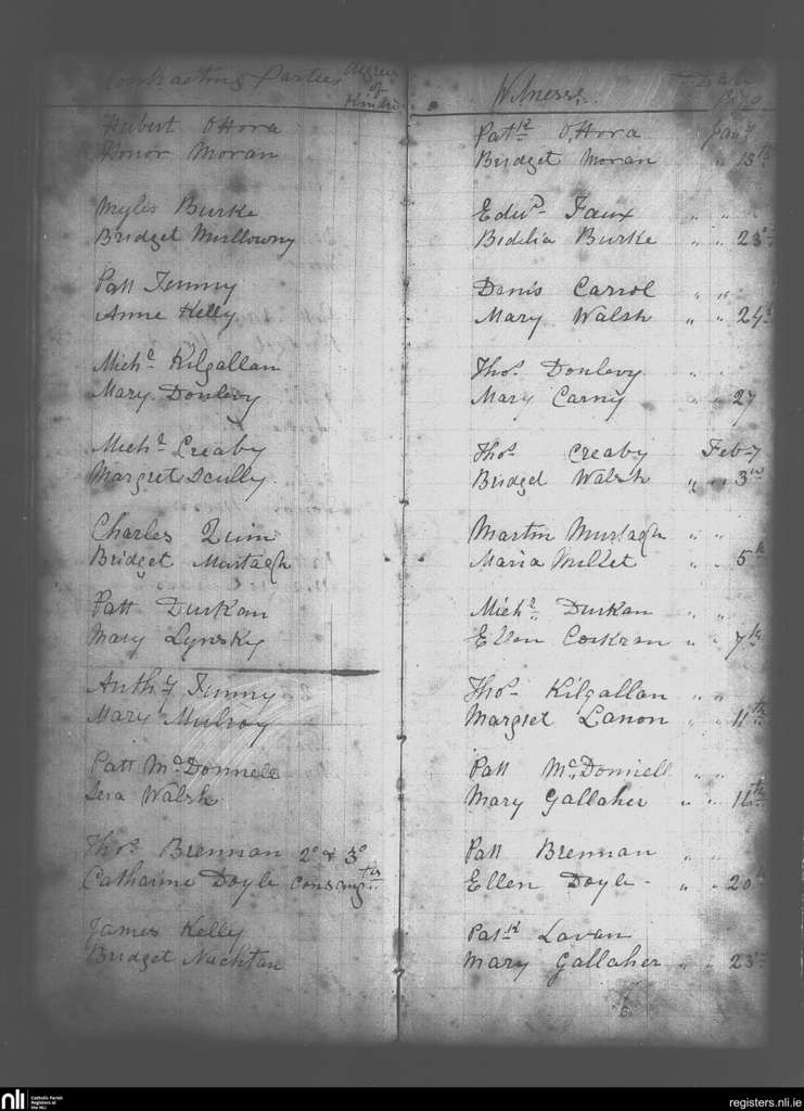 Bohola; County of Mayo; Diocese of Achonry. Marriages, Jan. 1870 to Feb. 1870