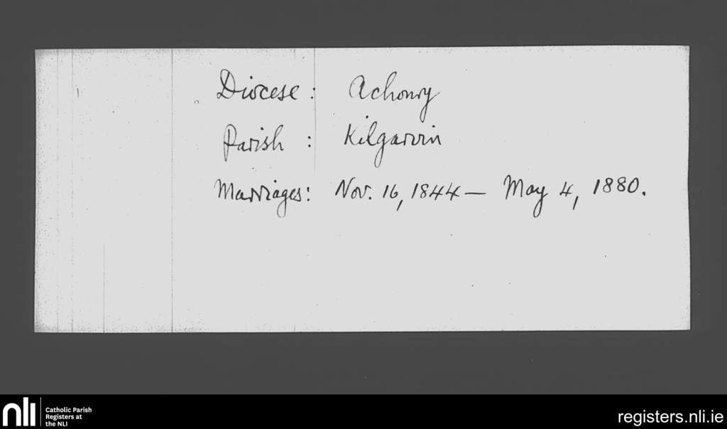 Kilgarvin; County of Mayo; Diocese of Achonry. Marriages