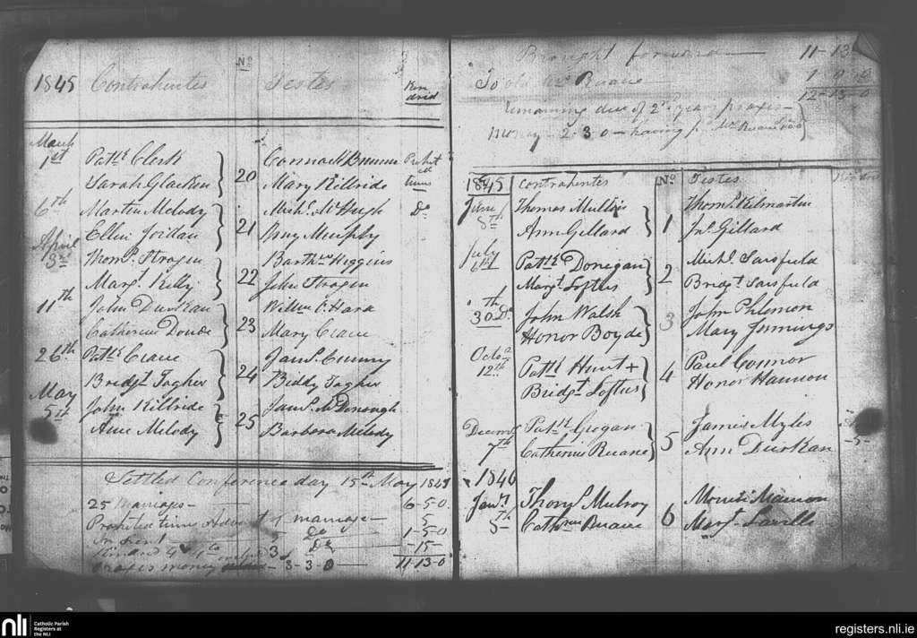 Kilgarvin; County of Mayo; Diocese of Achonry. Marriages, Mar. 1845 to Jan. 1846