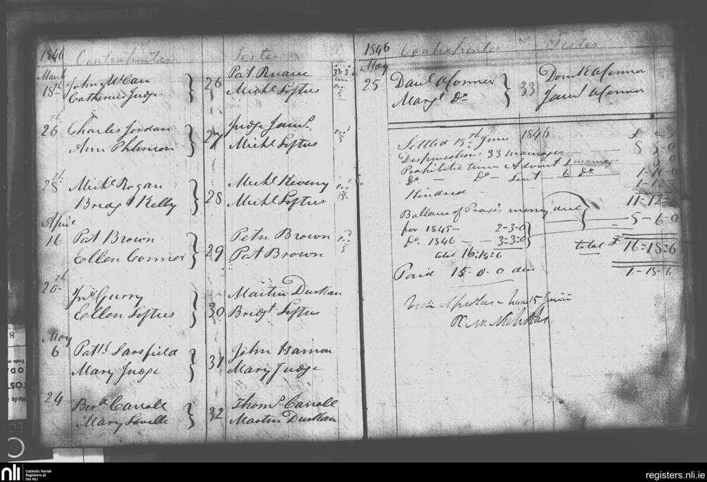 Kilgarvin; County of Mayo; Diocese of Achonry. Marriages, Feb. 1846 to Apr. 1846