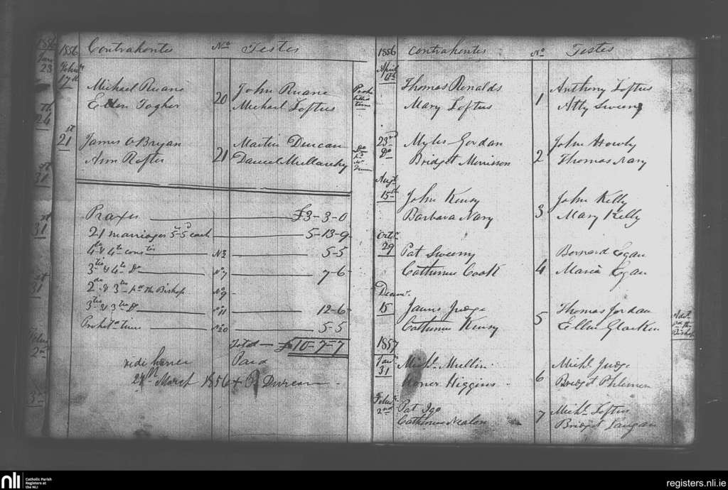 Kilgarvin; County of Mayo; Diocese of Achonry. Marriages, Feb. 1856 to Feb. 1857