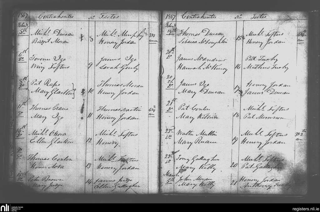 Kilgarvin; County of Mayo; Diocese of Achonry. Marriages, Feb. 1857 to Mar. 1857