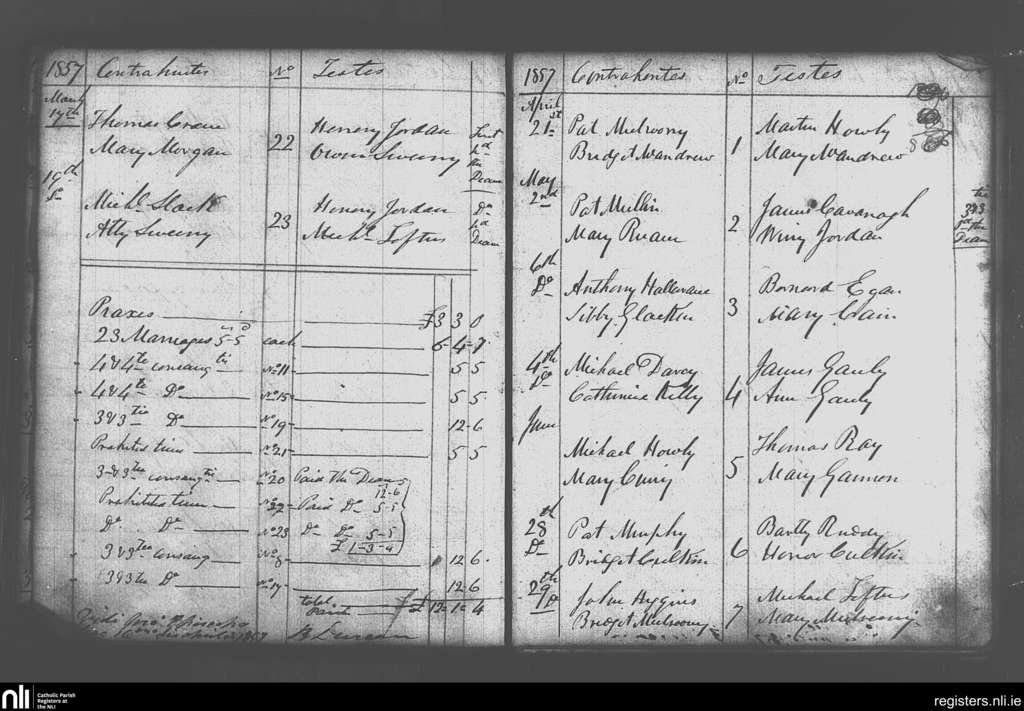 Kilgarvin; County of Mayo; Diocese of Achonry. Marriages, Mar. 1857 to June 1857