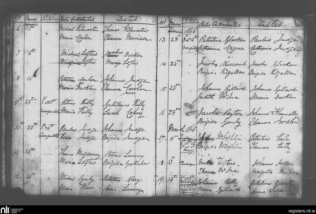Kilgarvin; County of Mayo; Diocese of Achonry. Marriages, Feb. 1865 to Mar. 1865