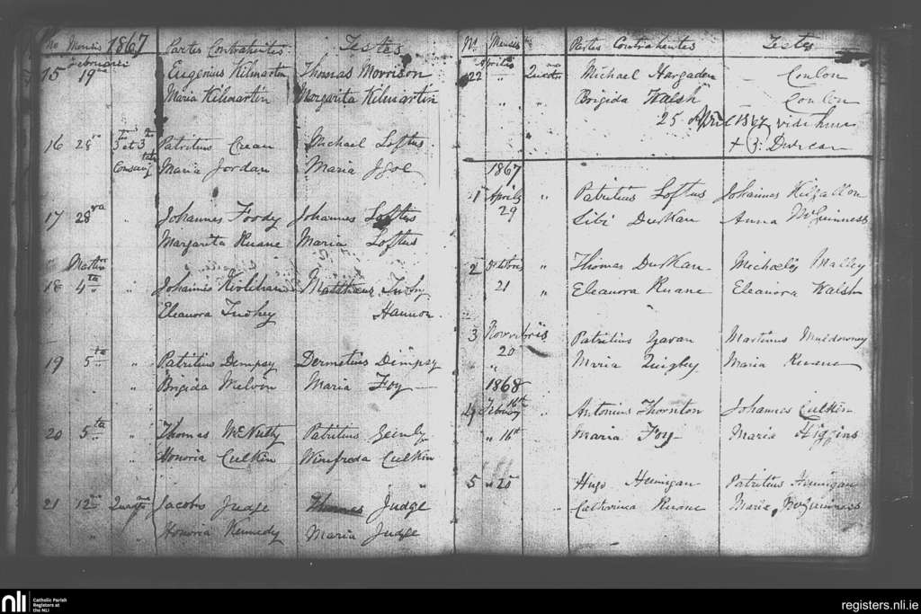 Kilgarvin; County of Mayo; Diocese of Achonry. Marriages, Feb. 1867 to Feb. 1868