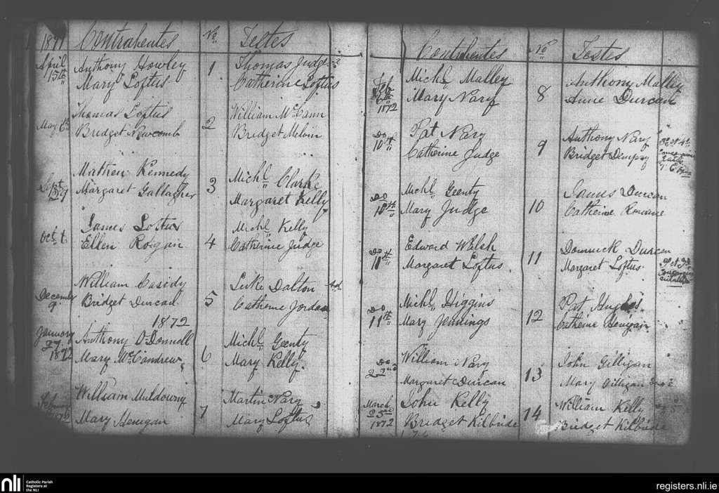 Kilgarvin; County of Mayo; Diocese of Achonry. Marriages, Apr. 1871 to Mar. 1872