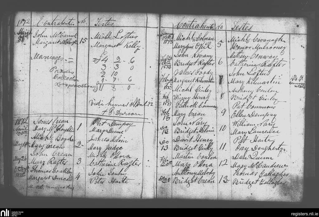 Kilgarvin; County of Mayo; Diocese of Achonry. Marriages, Mar. 1872 to Feb. 1873