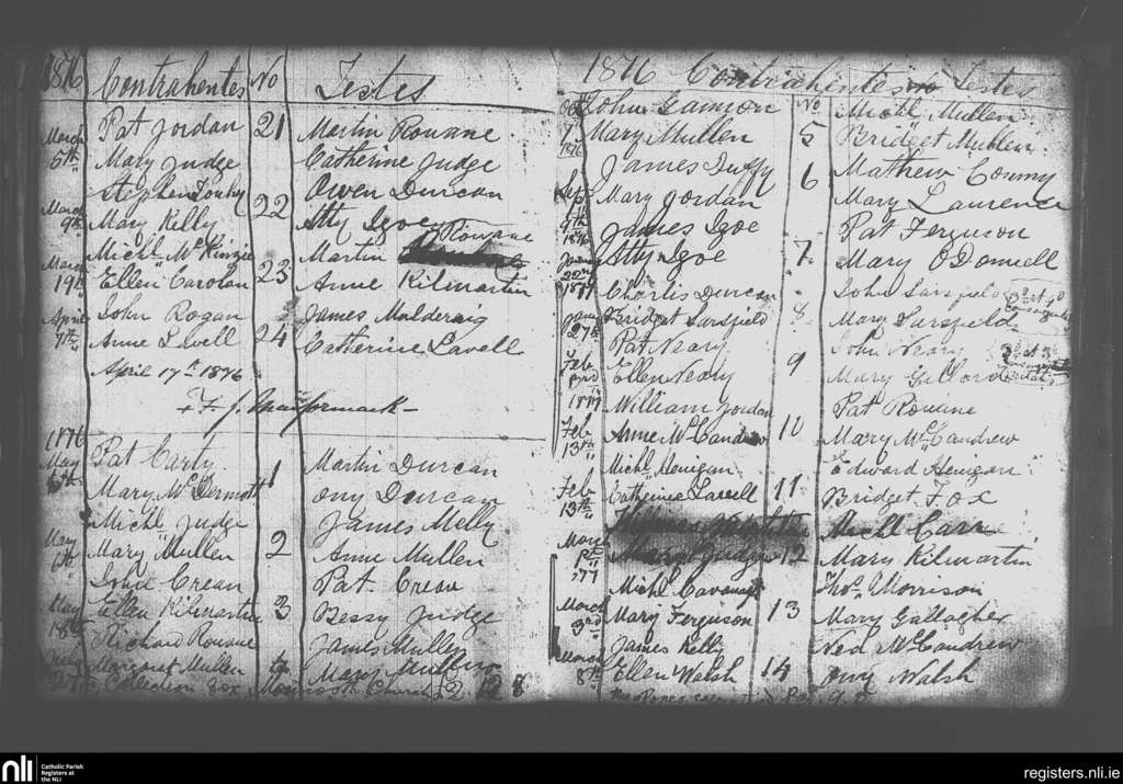 Kilgarvin; County of Mayo; Diocese of Achonry. Marriages, Mar. 1876 to Mar. 1877