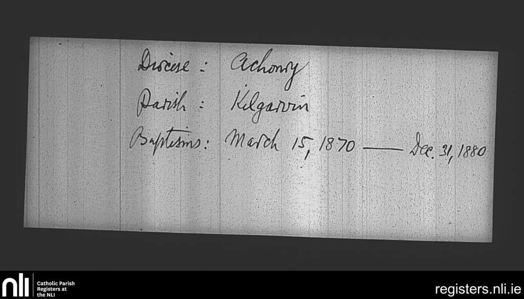 Kilgarvin; County of Mayo; Diocese of Achonry. Baptisms