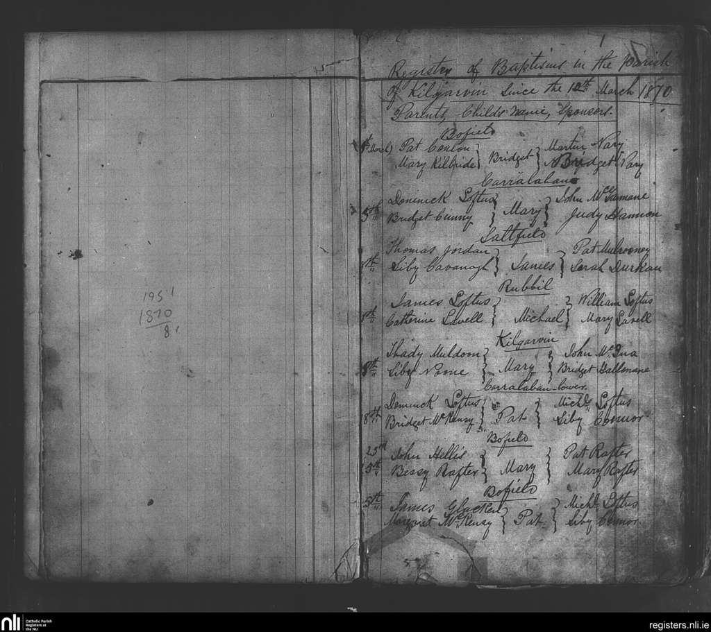 Kilgarvin; County of Mayo; Diocese of Achonry. Baptisms, Mar. 1870
