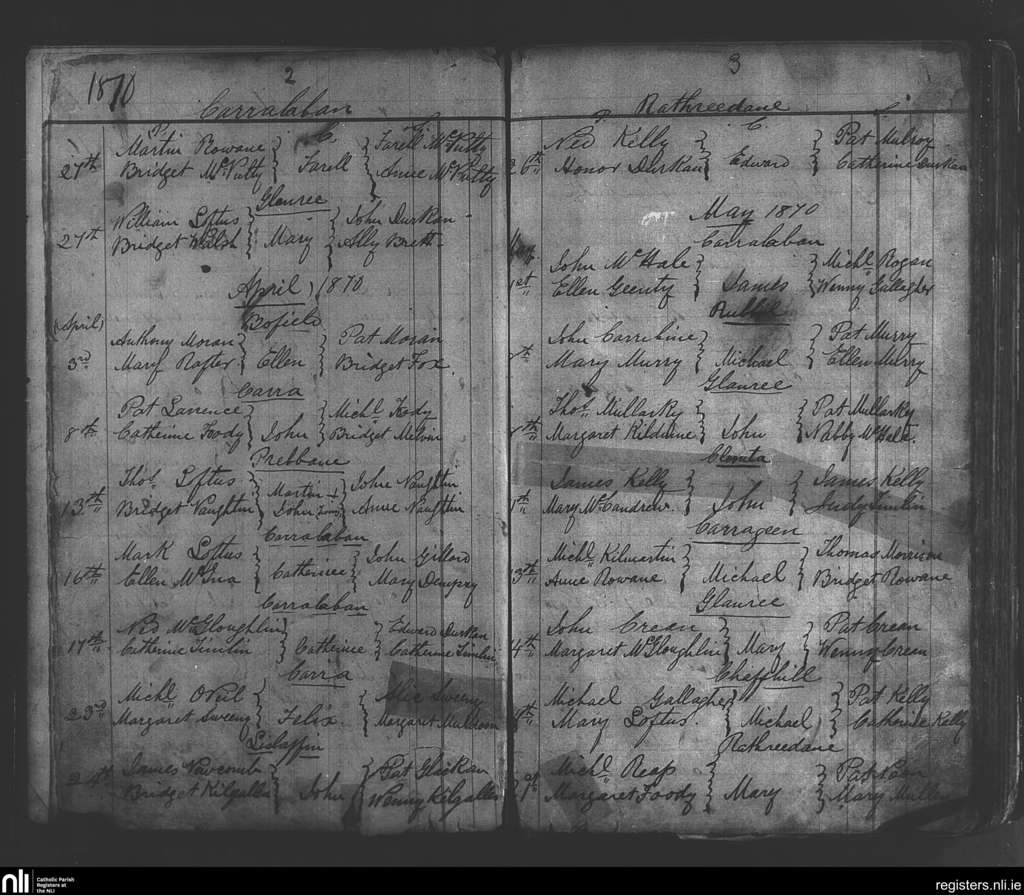 Kilgarvin; County of Mayo; Diocese of Achonry. Baptisms, Mar. 1870 to May 1870