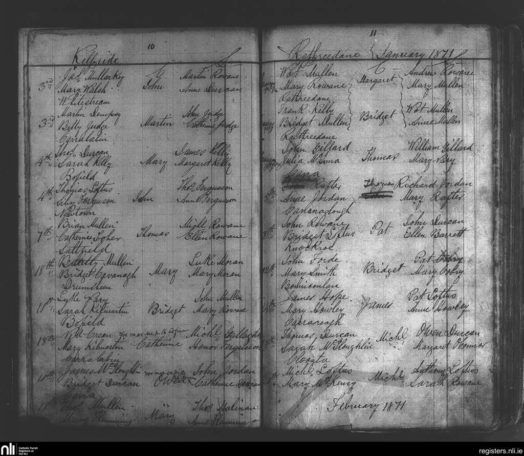 Kilgarvin; County of Mayo; Diocese of Achonry. Baptisms, Dec. 1870 to Feb. 1871