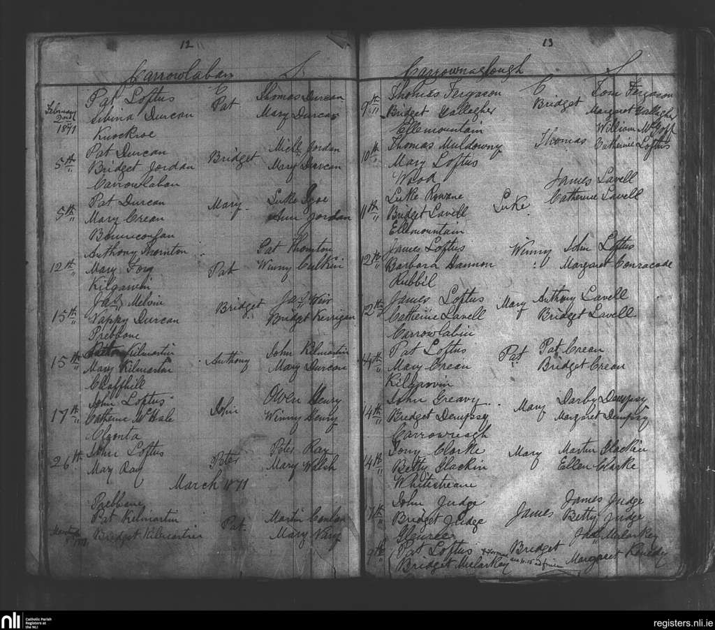 Kilgarvin; County of Mayo; Diocese of Achonry. Baptisms, Feb. 1871 to Mar. 1871