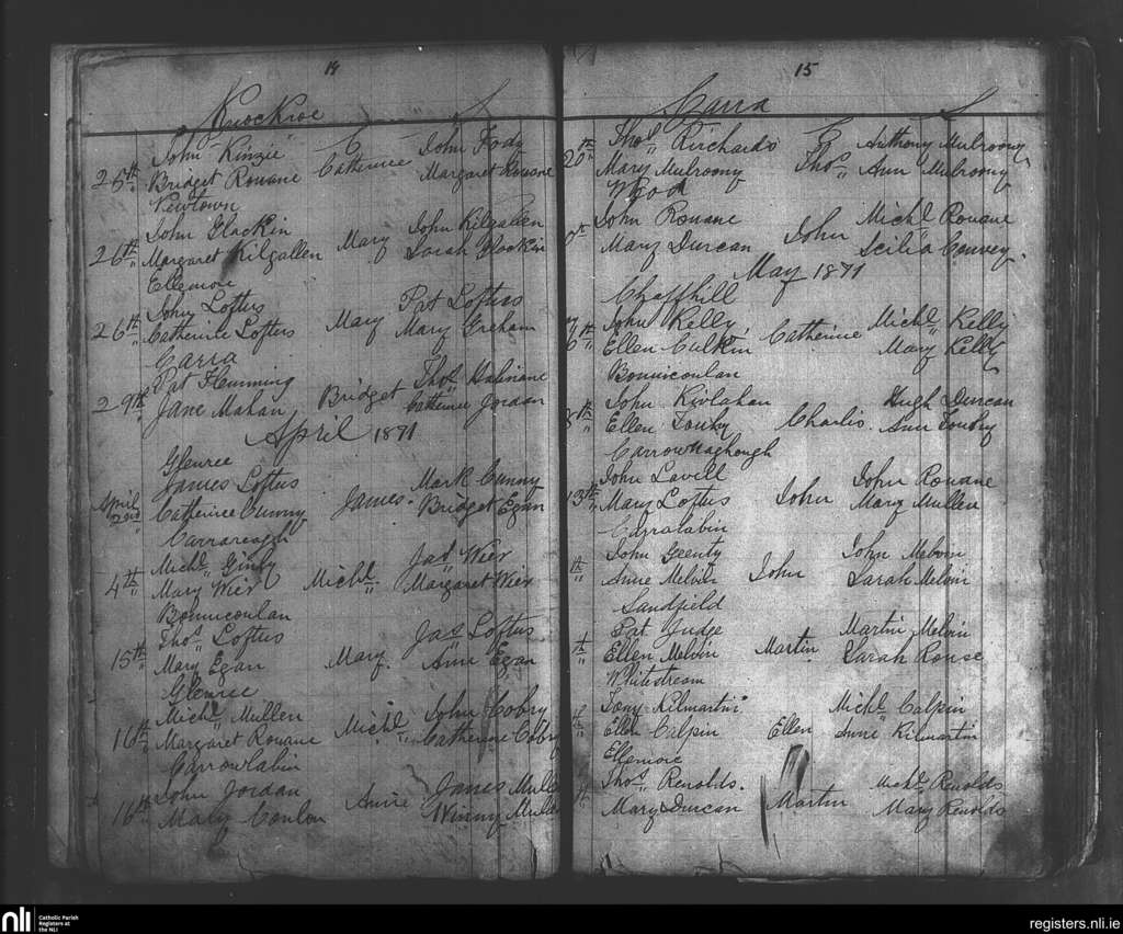 Kilgarvin; County of Mayo; Diocese of Achonry. Baptisms, Mar. 1871 to May 1871