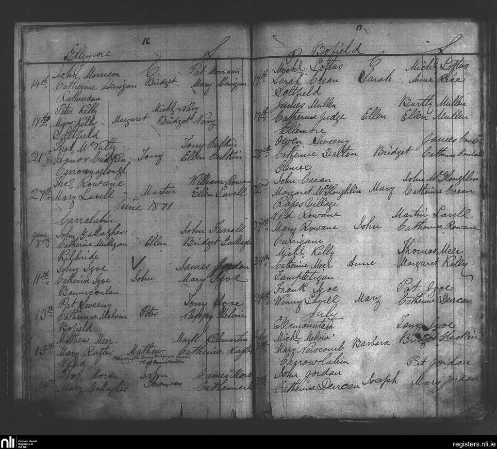 Kilgarvin; County of Mayo; Diocese of Achonry. Baptisms, May 1871 to July 1871