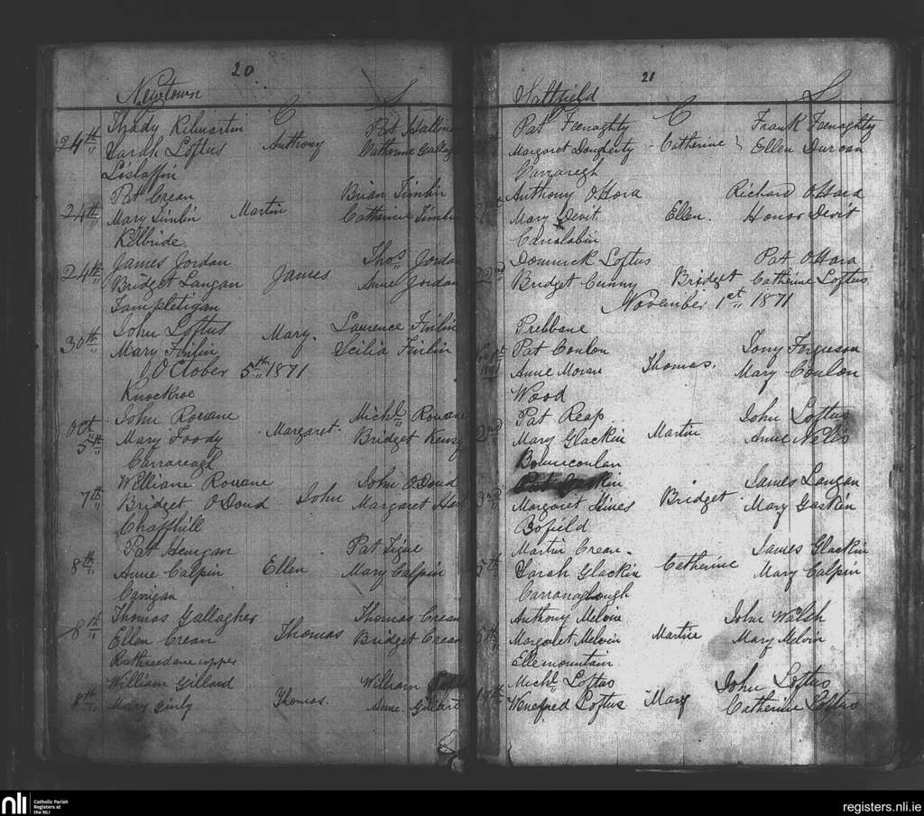 Kilgarvin; County of Mayo; Diocese of Achonry. Baptisms, Sep. 1871 to Nov. 1871