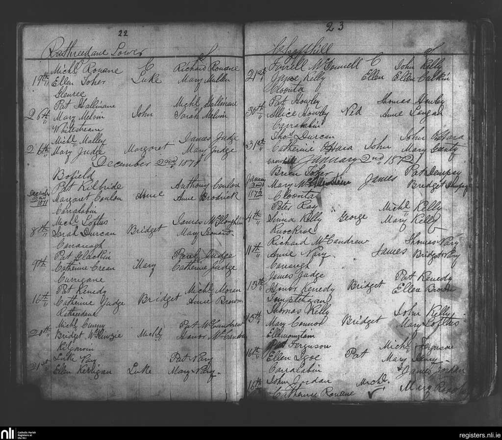 Kilgarvin; County of Mayo; Diocese of Achonry. Baptisms, Nov. 1871 to Jan. 1872