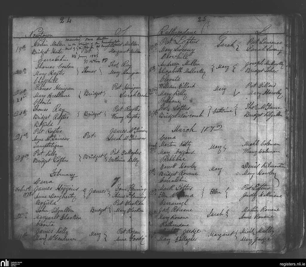 Kilgarvin; County of Mayo; Diocese of Achonry. Baptisms, Jan. 1872 to Mar. 1872