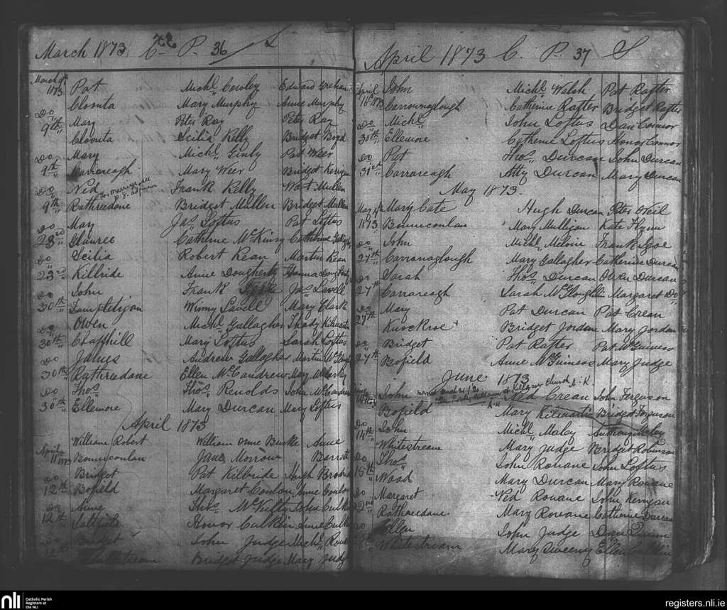 Kilgarvin; County of Mayo; Diocese of Achonry. Baptisms, Mar. 1873 to June 1873