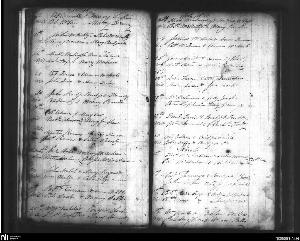 Kilshalvey; County of Sligo, Mayo; Diocese of Achonry. Marriages, Jan. 1840 to Mar. 1840