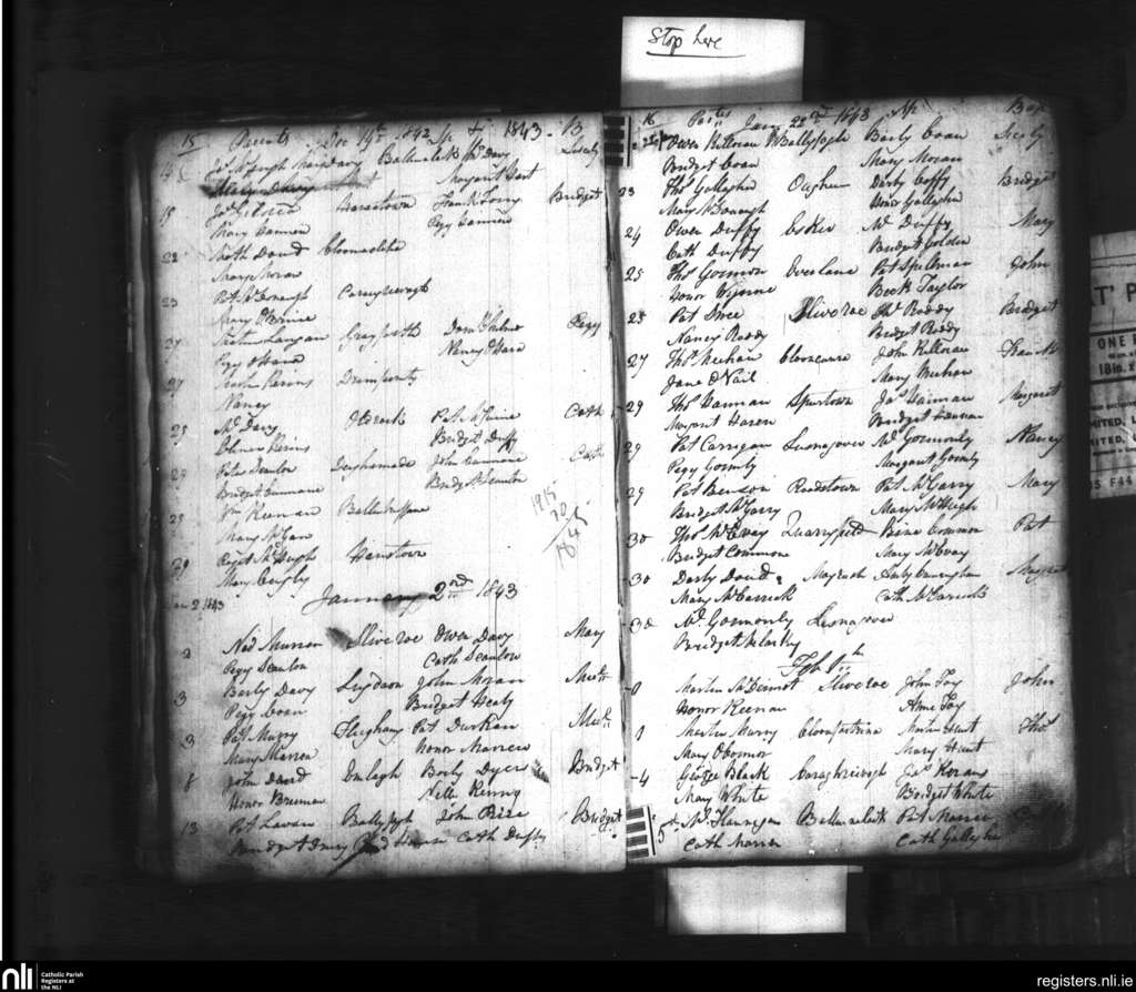 Kilshalvey; County of Sligo, Mayo; Diocese of Achonry. Baptisms, Dec. 1842 to Feb. 1843
