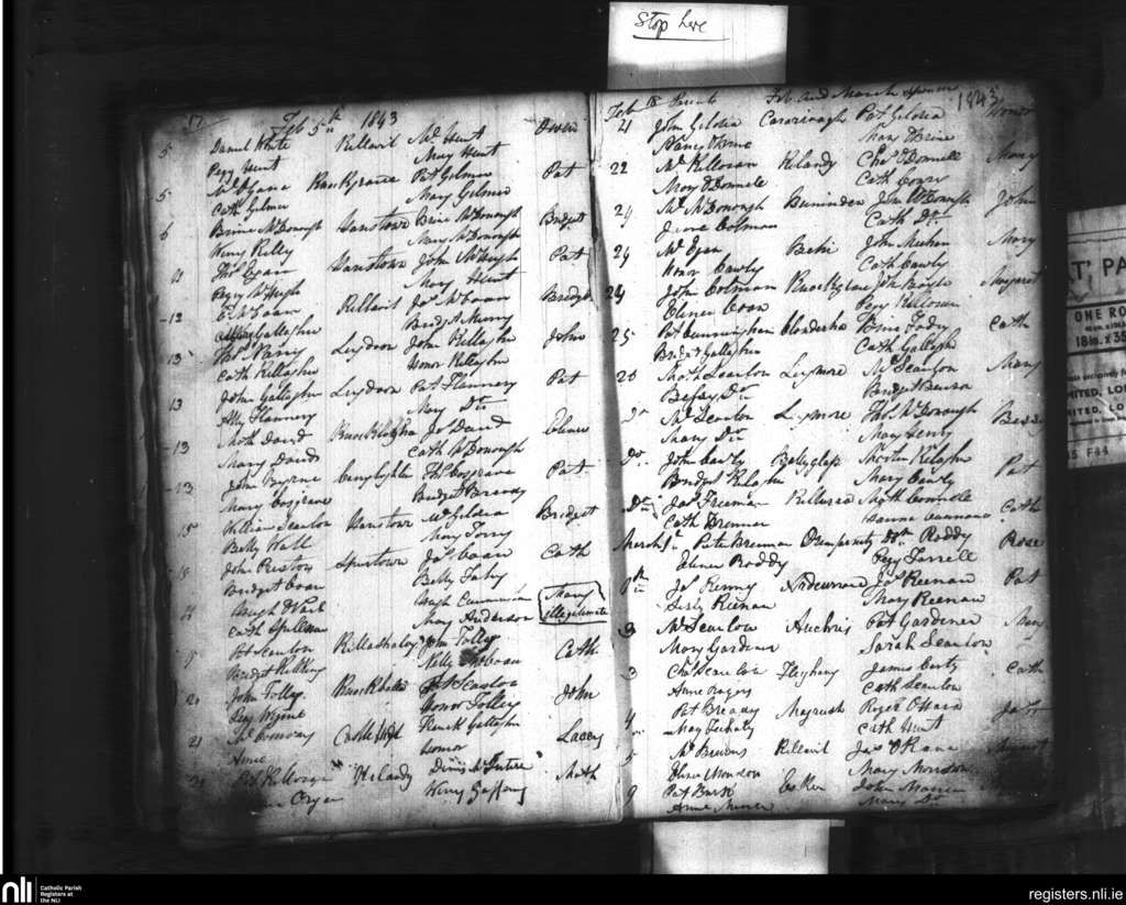 Kilshalvey; County of Sligo, Mayo; Diocese of Achonry. Baptisms, Feb. 1843 to Mar. 1843