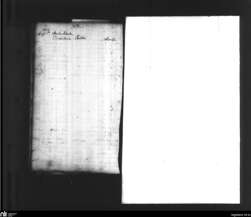 Kilshalvey; County of Sligo, Mayo; Diocese of Achonry. Baptisms, Aug. 1850
