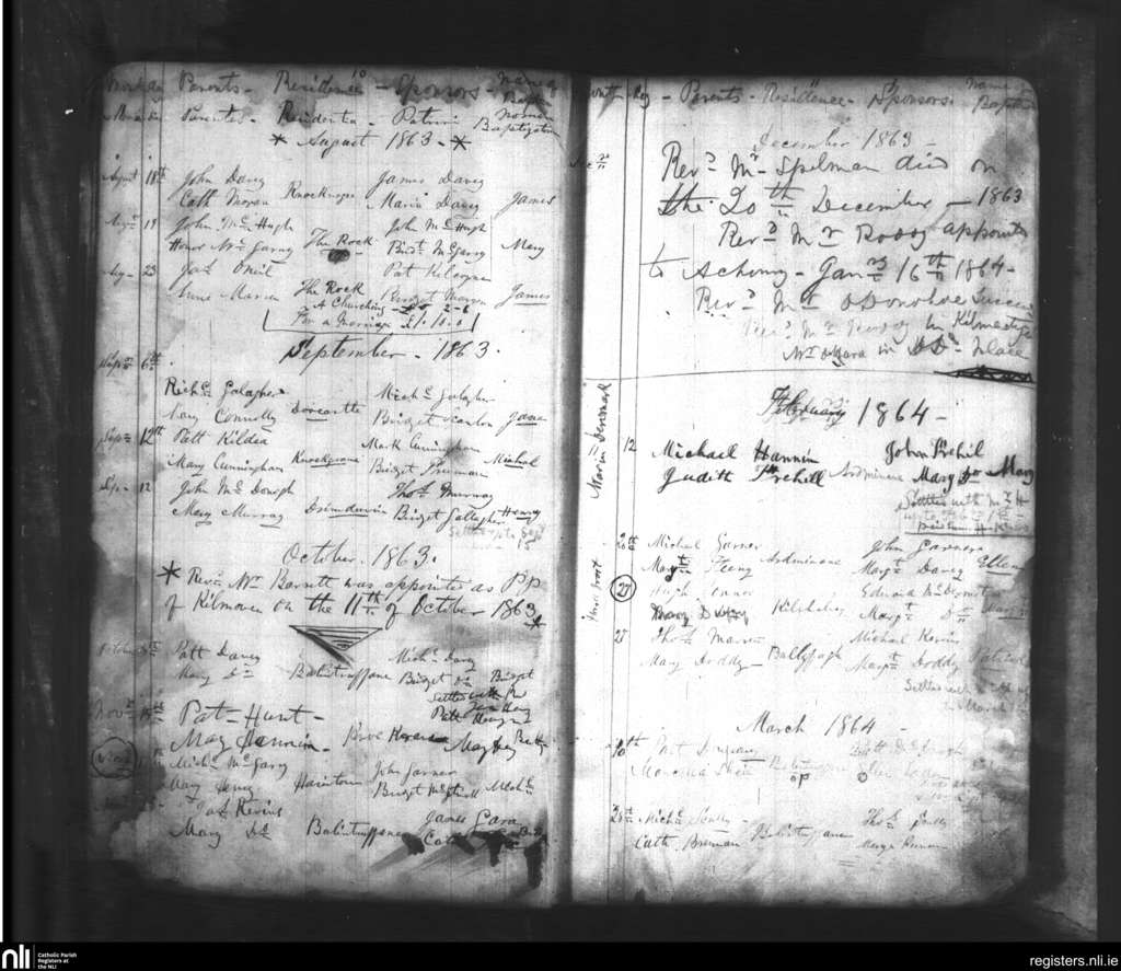 Kilshalvey; County of Mayo, Sligo; Diocese of Achonry. Baptisms, Aug. 1863 to Mar. 1864