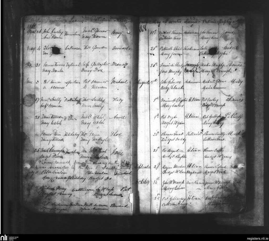 Kilshalvey; County of Mayo, Sligo; Diocese of Achonry. Baptisms, Apr. 1868 to Oct. 1868