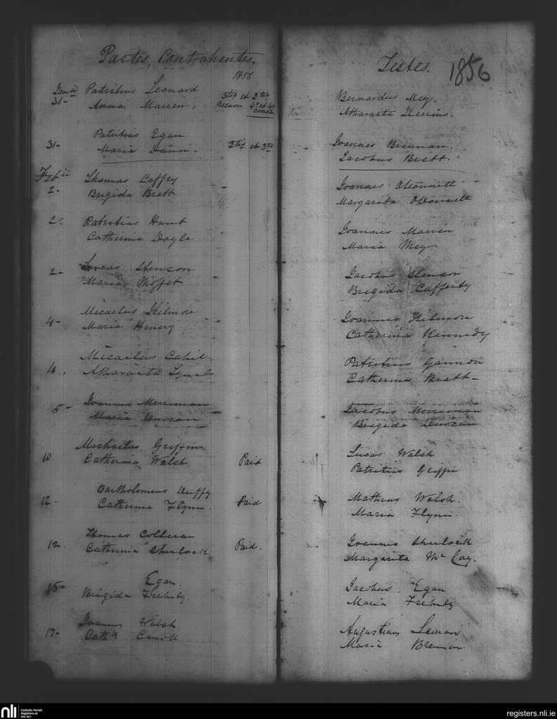 Kilbeagh; County of Mayo; Diocese of Achonry. Marriages, Jan. 1856 to Feb. 1856