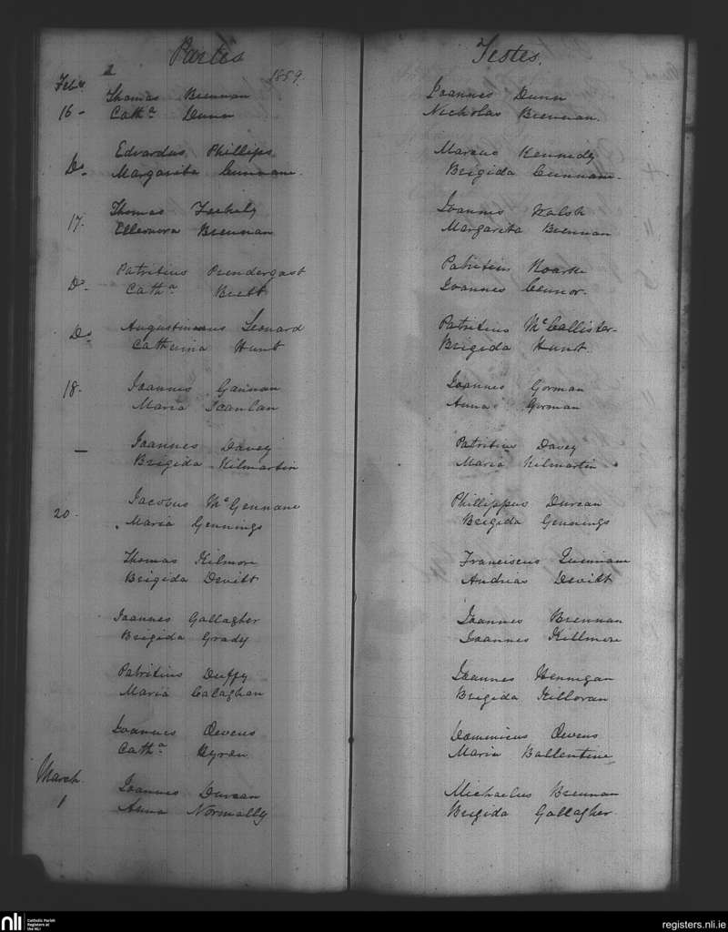Kilbeagh; County of Mayo; Diocese of Achonry. Marriages, Feb. 1859 to Mar. 1859