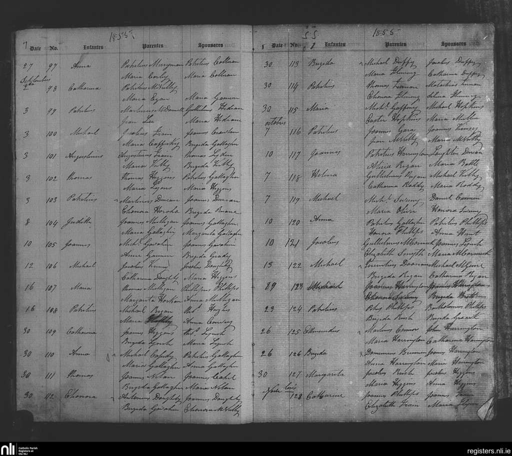 Kilbeagh; County of Mayo; Diocese of Achonry. Baptisms, Aug. 1855 to Nov. 1855
