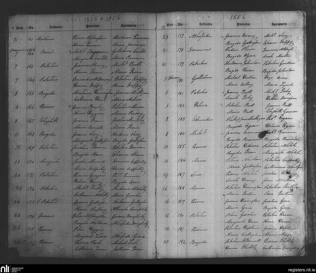 Kilbeagh; County of Mayo; Diocese of Achonry. Baptisms, Dec. 1855 to Feb. 1856