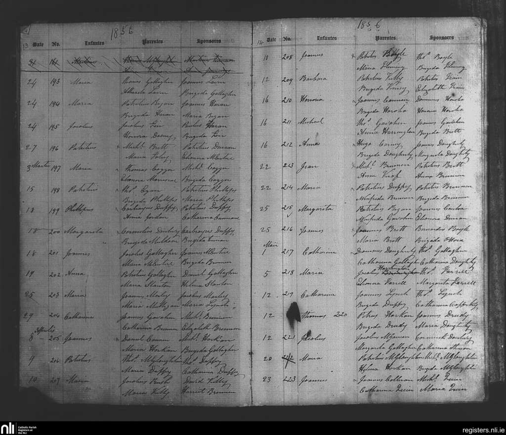 Kilbeagh; County of Mayo; Diocese of Achonry. Baptisms, Feb. 1856 to May 1856