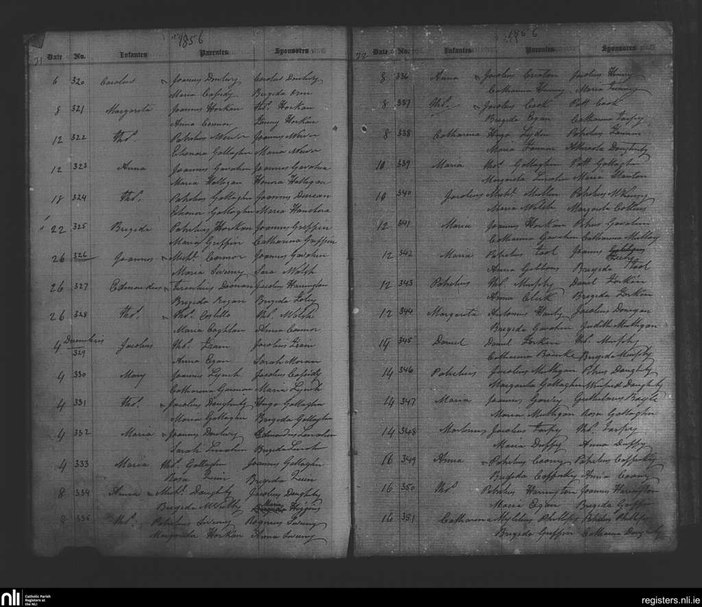 Kilbeagh; County of Mayo; Diocese of Achonry. Baptisms, Nov. 1856 to Dec. 1856
