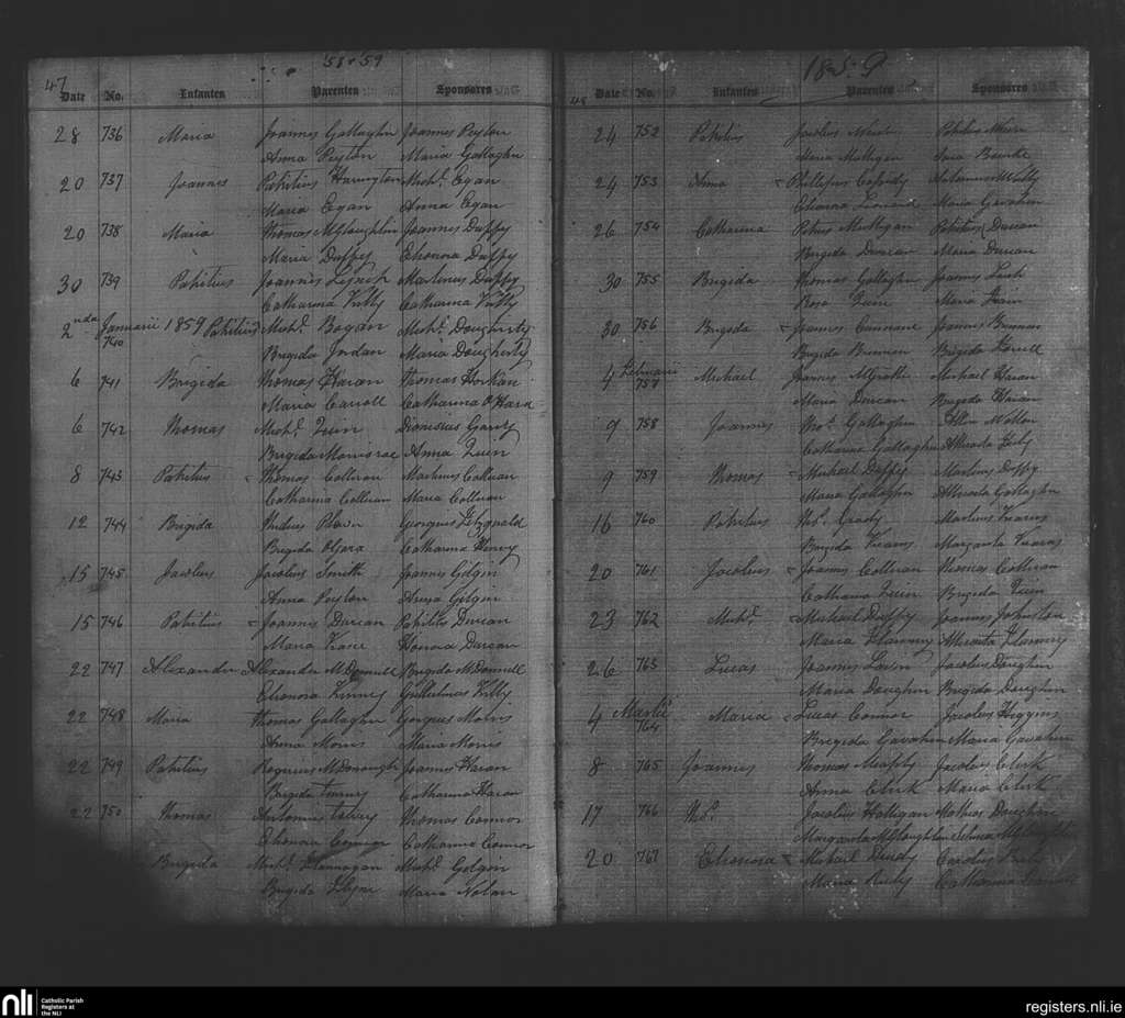 Kilbeagh; County of Mayo; Diocese of Achonry. Baptisms, Dec. 1858 to Mar. 1859