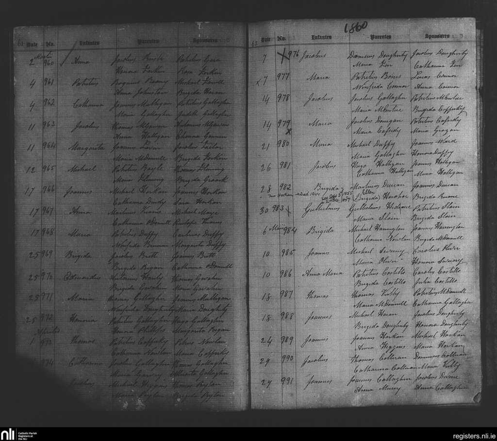 Kilbeagh; County of Mayo; Diocese of Achonry. Baptisms, Mar. 1860 to May 1860