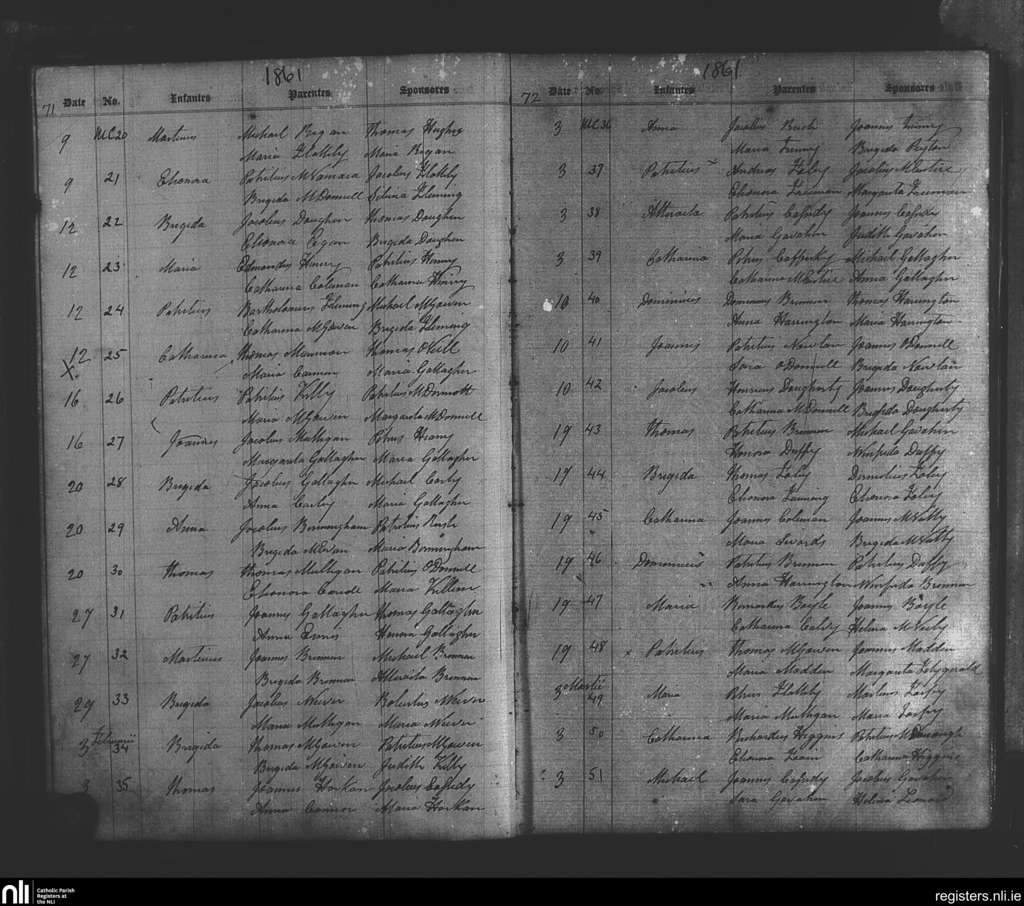 Kilbeagh; County of Mayo; Diocese of Achonry. Baptisms, Jan. 1861 to Mar. 1861