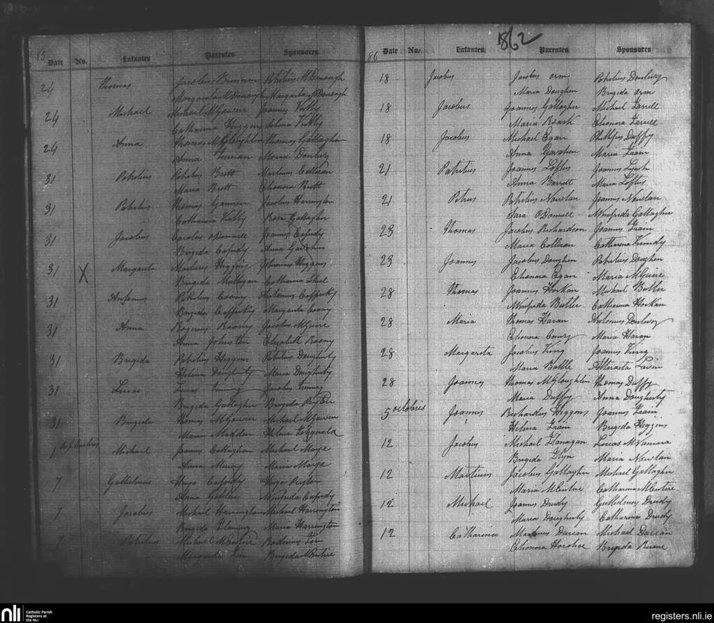 Kilbeagh; County of Mayo; Diocese of Achonry. Baptisms, Aug. 1862 to Oct. 1862