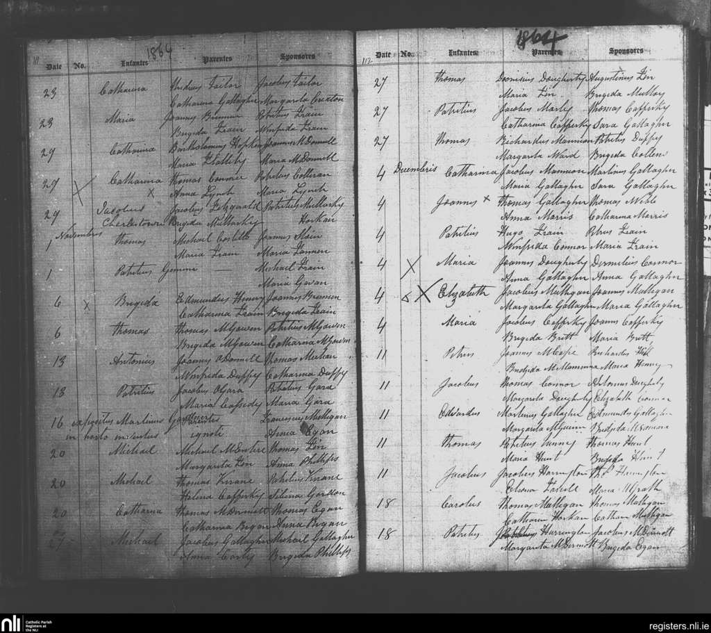 Kilbeagh; County of Mayo; Diocese of Achonry. Baptisms, Oct. 1864 to Dec. 1864