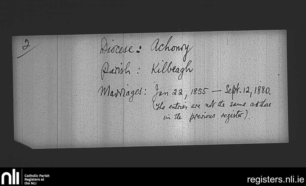 Kilbeagh; County of Mayo; Diocese of Achonry. Marriages
